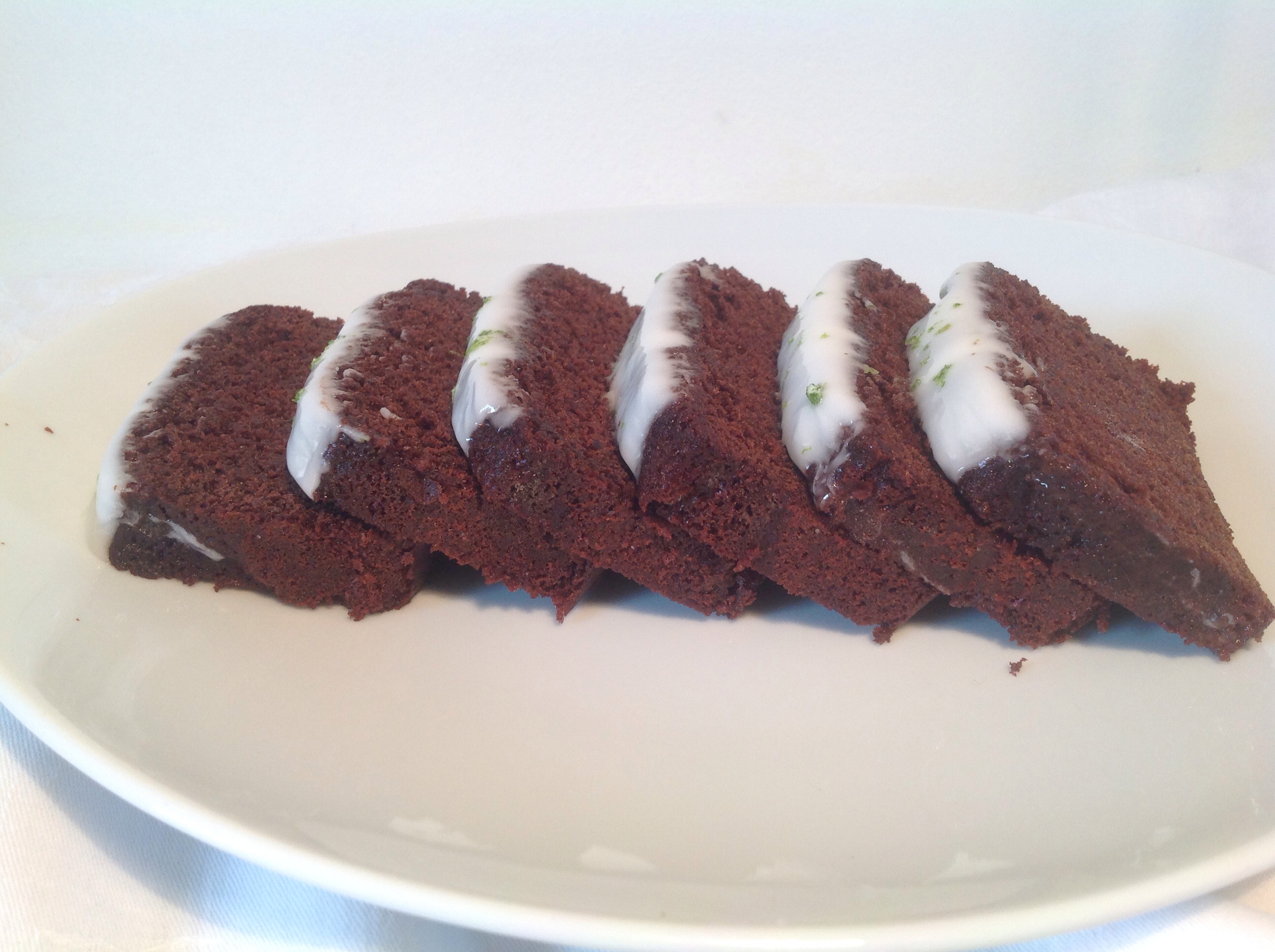 Glasuren er lavet af flormelis og limesaft. Pyntet med limeskal.